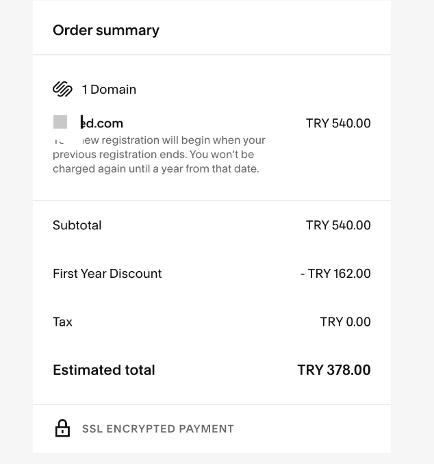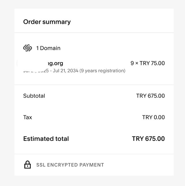 可能有些朋友知道Google Domains以前选择地区为土耳其,可以用土耳其里拉结算,域名价格相当优惠。后来Google Domains倒闭域名自动迁到了Squarespace。而迁移过去的老域名,截止到目前还是可以用优惠价格续费。下图这个续费9年只要675里拉。